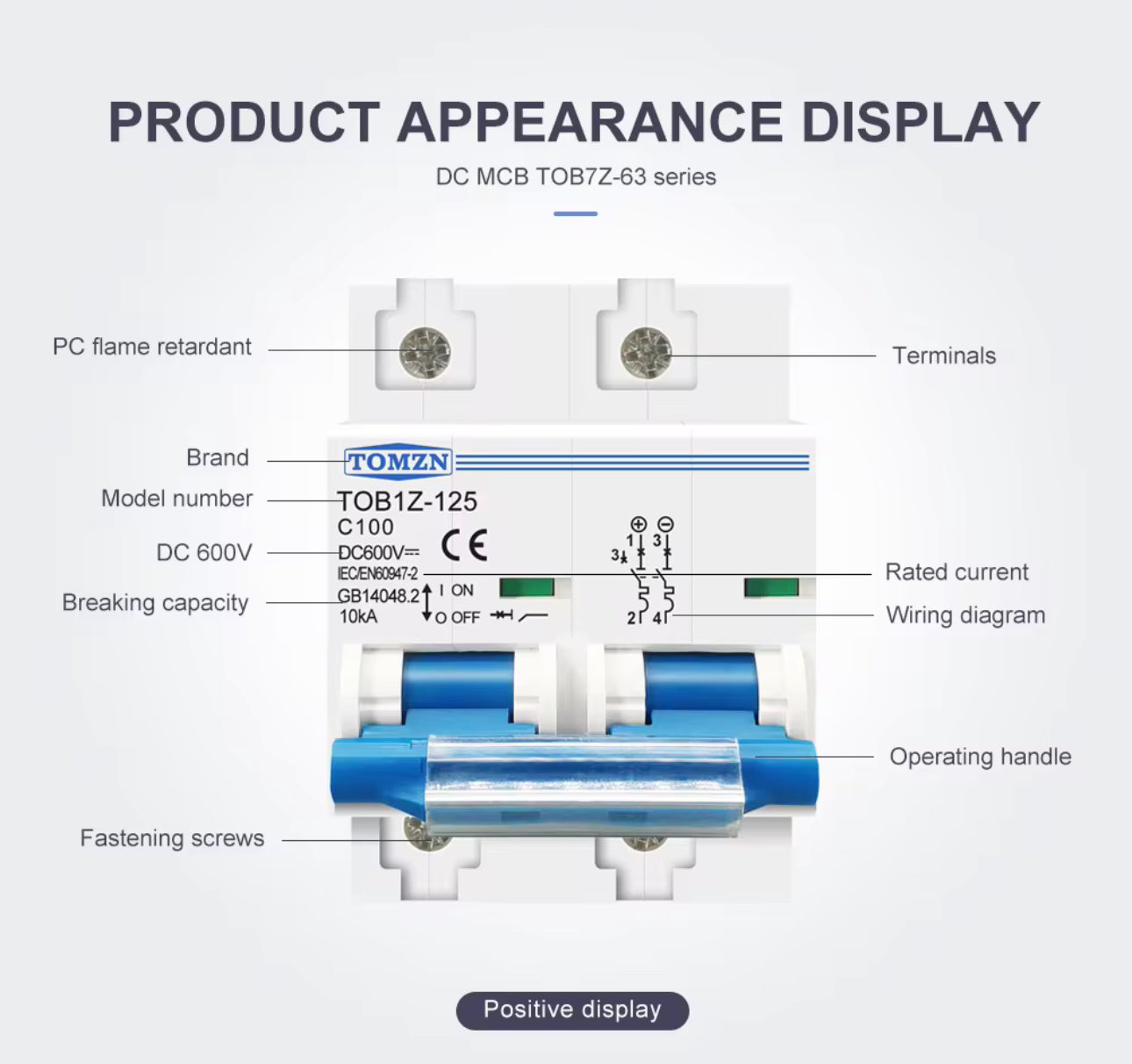 TOBIZ-125 Series DC Miniature Circuit Breaker, apply to rating current 125A or less, Direct current rating voltage 220V