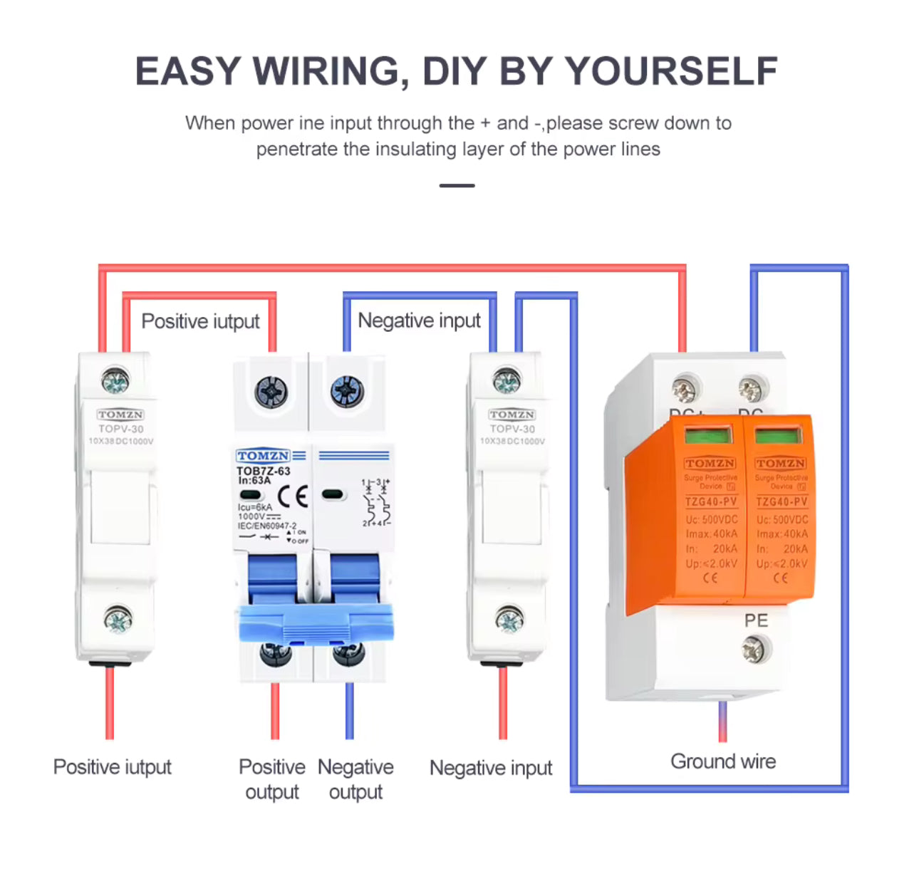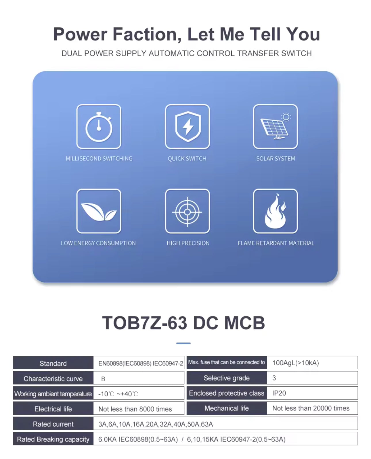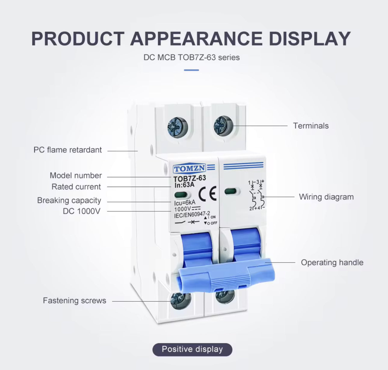 2P DC 1000V Solar Mini Circuit Breaker 32A 63A DC MCB for PV System
