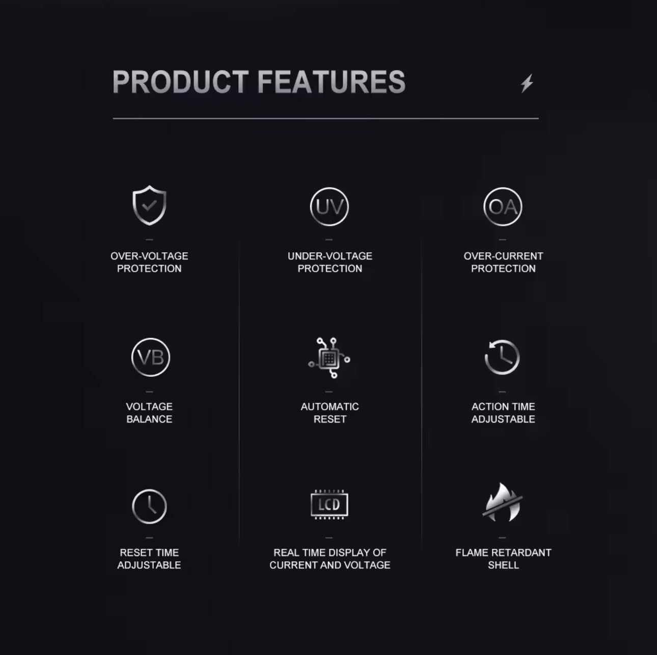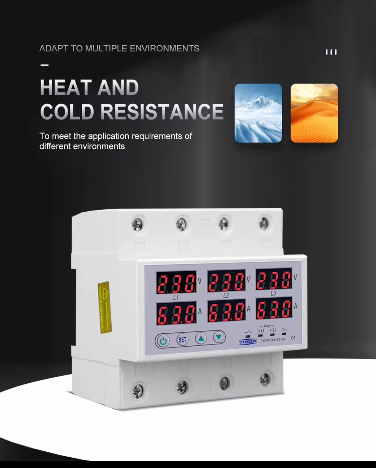 Three phase Voltage Current Relay Protector 63A 100A 220V 3P+N Over Under Voltage Relay Current Limiter Adjustable