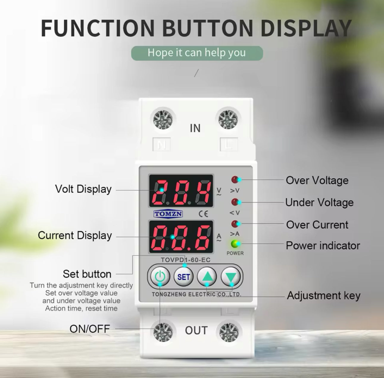 6.Over-current adjustment range:1-40A (default:20A)1-63A (default:40A)