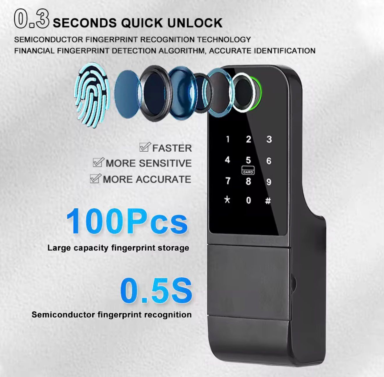 Biometric Fingerprint Scanner: Allows for storing multiple fingerprints for quick and secure entry.