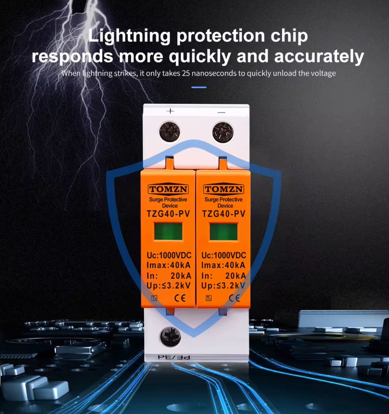 SPD DC 1000V 20KA~40KA House Surge Protector Protective Low-voltage Arrester Device