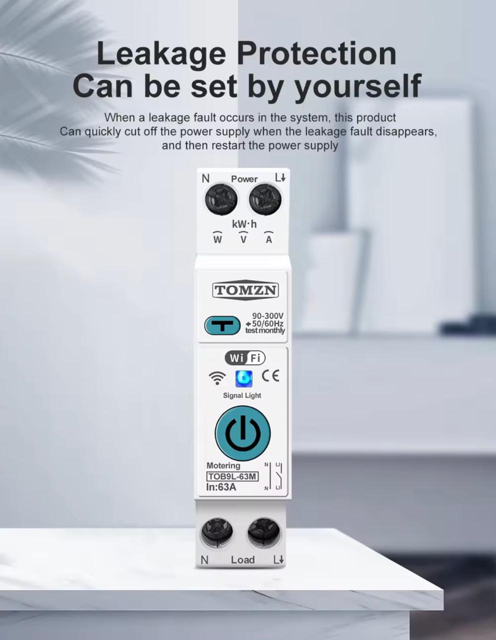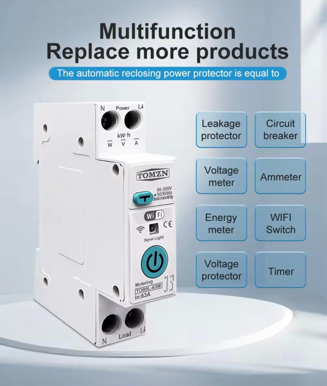 The TOMZN Smart WiFi Switch is an all-in-one smart protection and energy management device, designed for modern homes and small businesses. With 10 powerful built-in functions—including overload protection, earth leakage monitoring, energy tracking, and WiFi control—it gives you complete control over your electrical system, anytime, anywhere. Ideal for smart automation, energy-saving setups, and safety-critical environments.