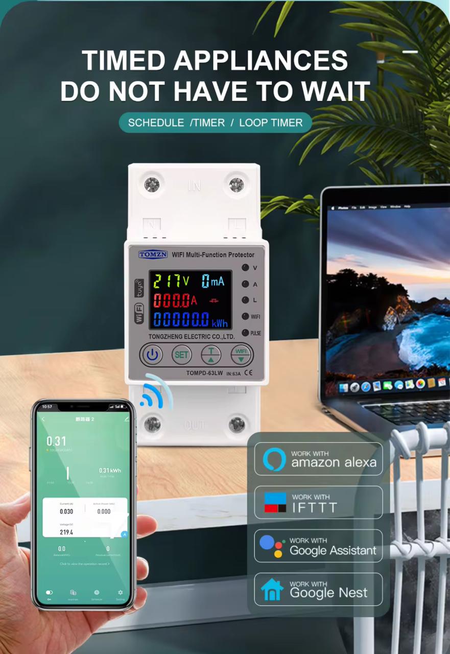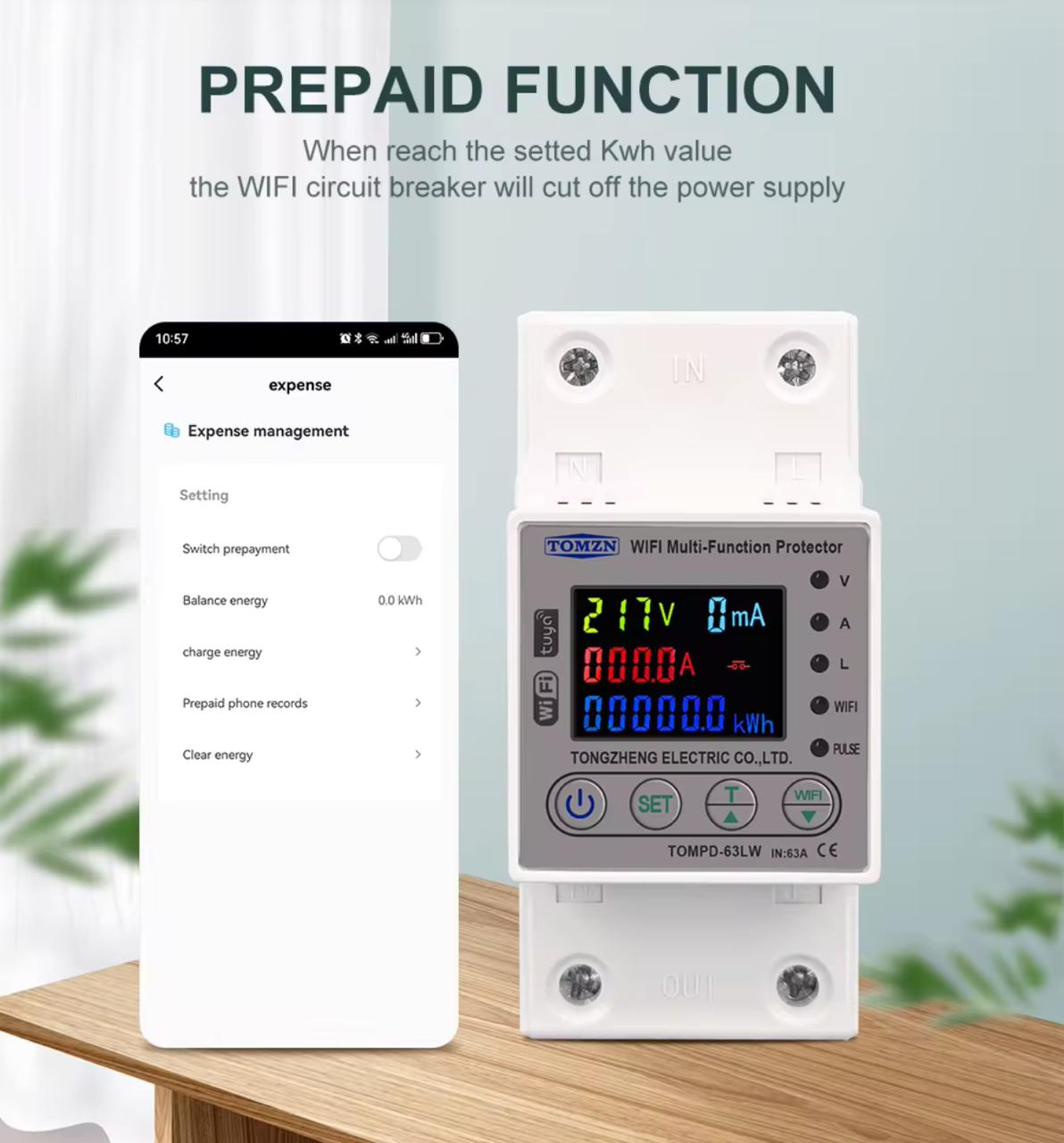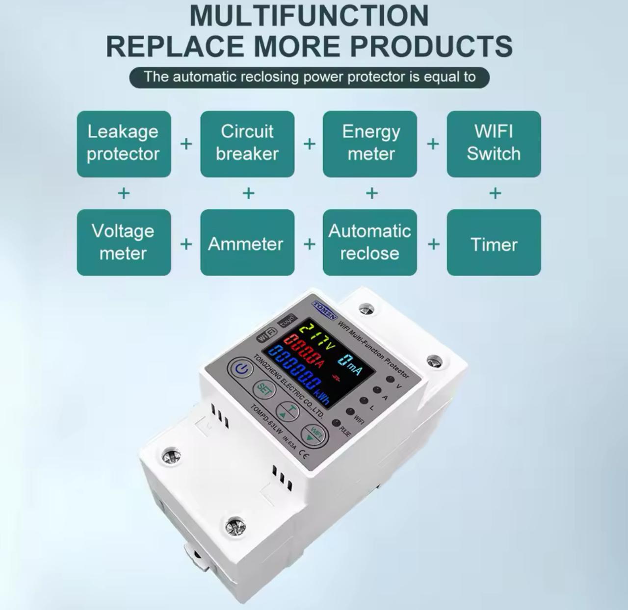 7.Over current protection 1A-63A (adjustable) (default: 40A)
