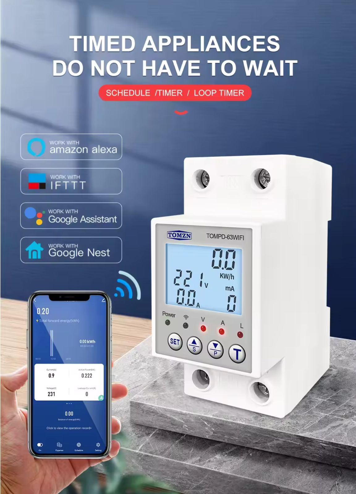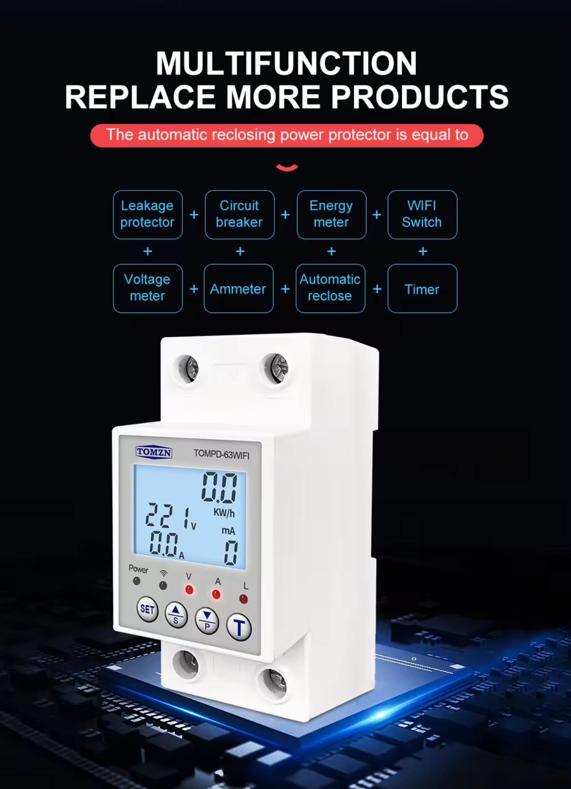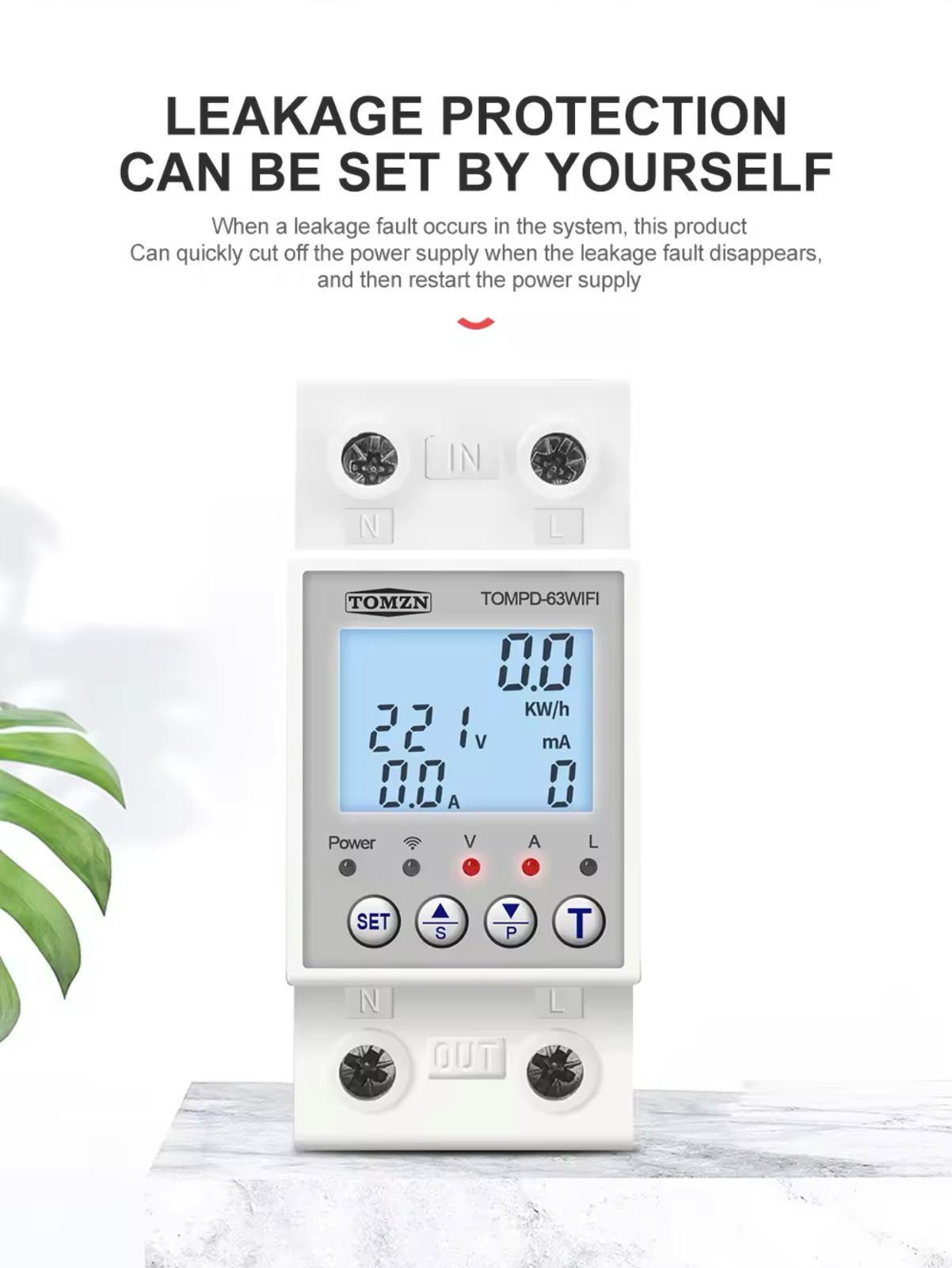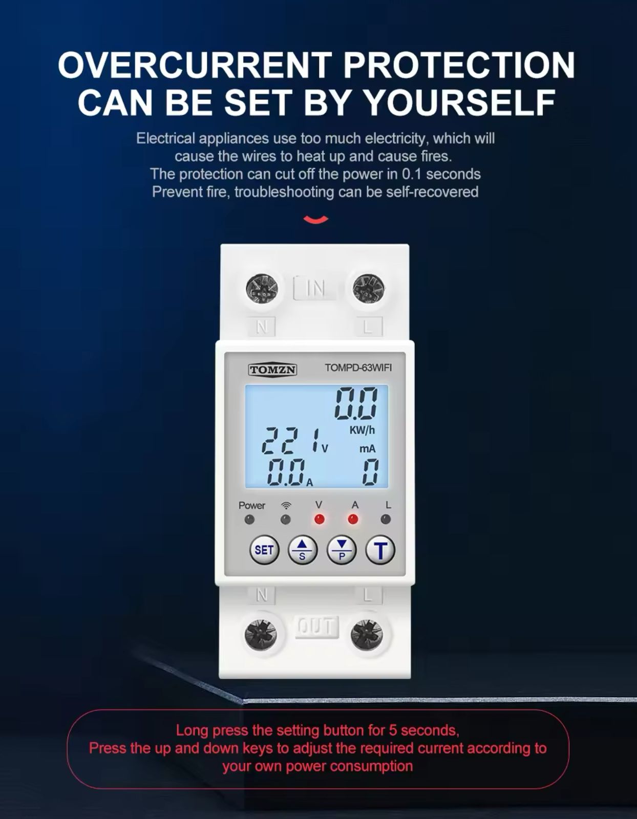 7.Over current protection 1A-63A (adjustable) (default: 63A)