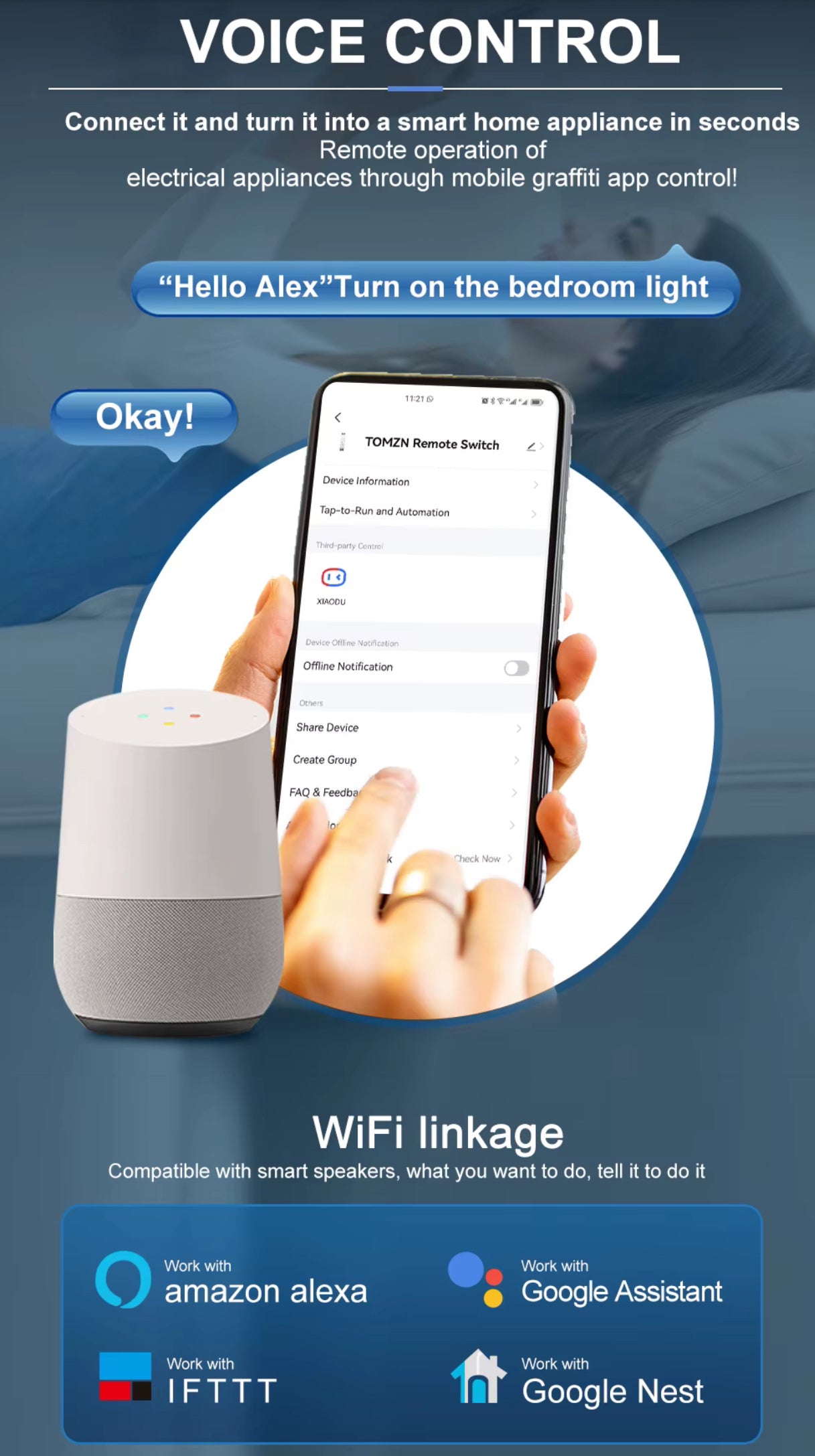 • Remote Control: Control your electrical devices anytime and from anywhere via the Tuya app.