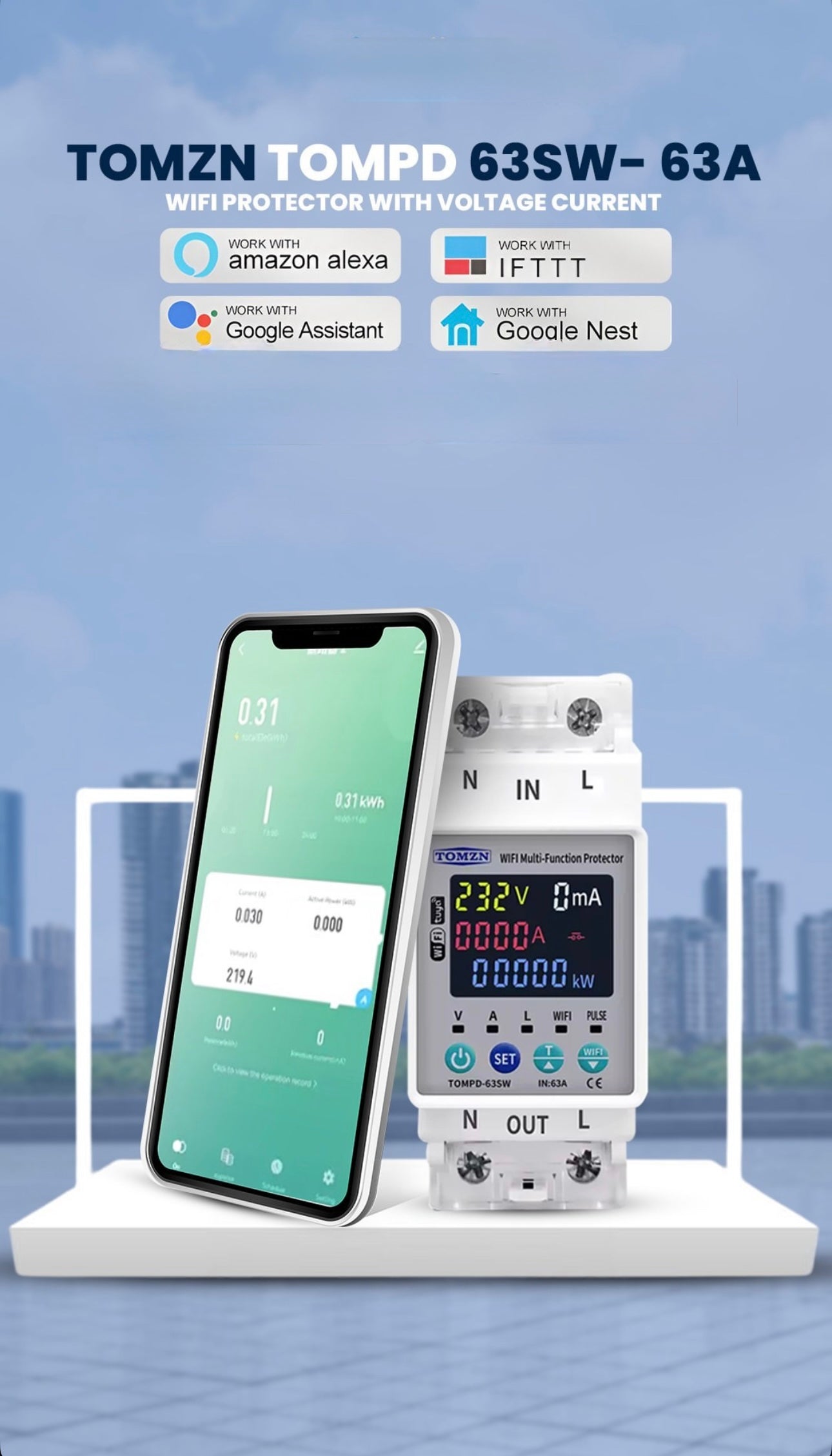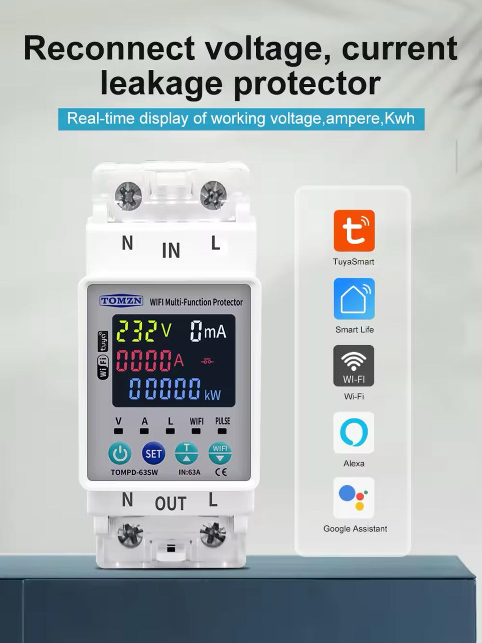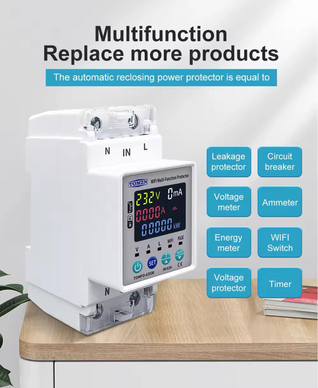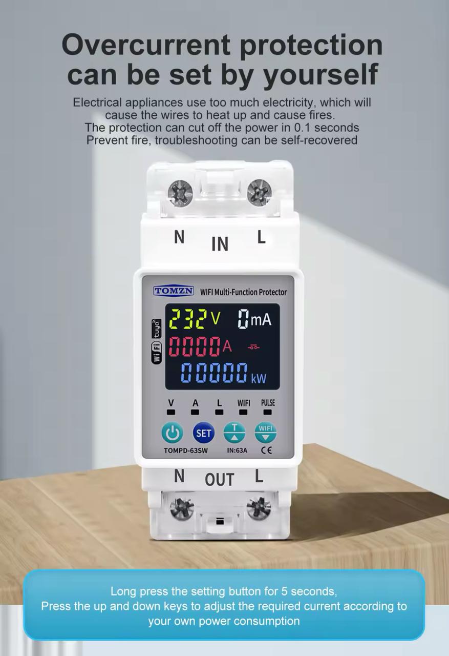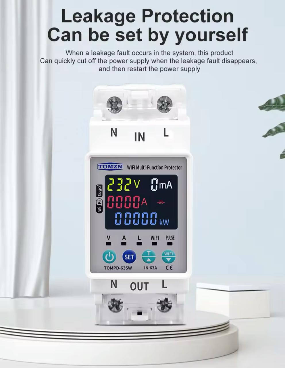 Tomzn TOMPD 63SW-63A WIFI Protector is a comprehensive, smart device that provides protection and monitoring for electrical systems. Below are its key features and specifications: